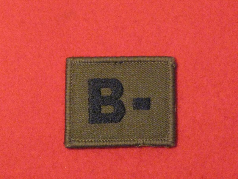 HILLMILITARYMEDALS.CO.UK BLOOD GROUP PATCH BADGE B - WITH VELCRO BACKING OLIVE GREEN BADGE.
