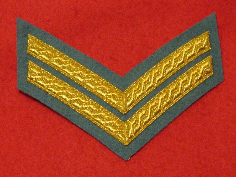 MESS DRESS 2 BAR CORPORAL CHEVRON GOLD ON POMPADOUR BLUE BADGE