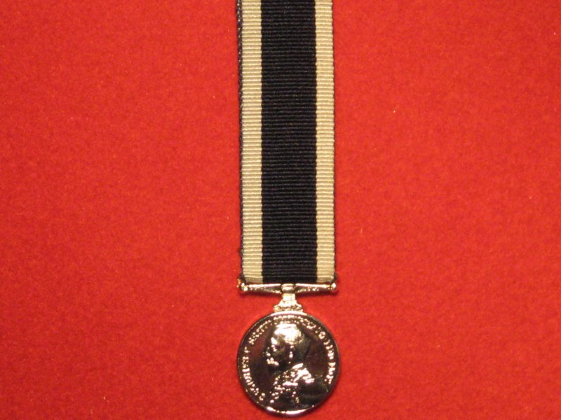 HILLMILITARYMEDALS.CO.UK Genuine Miniature Medal in mint condition with ribbon. MINIATURE ROYAL NAVY LSGC MEDAL LONG SERVICE GOOD CONDUCT MEDAL GV UNCROWNED ADMIRALS HEAD. Ribbon Colours - Dark Blue (Navy Blue) centre with White edges. Item - Genuine Miniature Medal in mint condition with ribbon. History and medal information - This is a British Naval Long Service and Good Conduct medal awarded to Marines and Navy personnel. The Navy LSGC has been awarded since 1831. Originally awarded for 21 years exemplary conduct, but the period was reduced to 10 years in 1874, then later increased to 15 years. Bars for additional periods of 15 years were instituted by George V. In March 1981 commissoned officers of the naval sevices became eligible after 15 years service, provided at least 12 years were served in the ranks. The reverse side has a three masted man of war ship surrounded on the edges with - FOR LONG SERVICE AND GOOD CONDUCT.